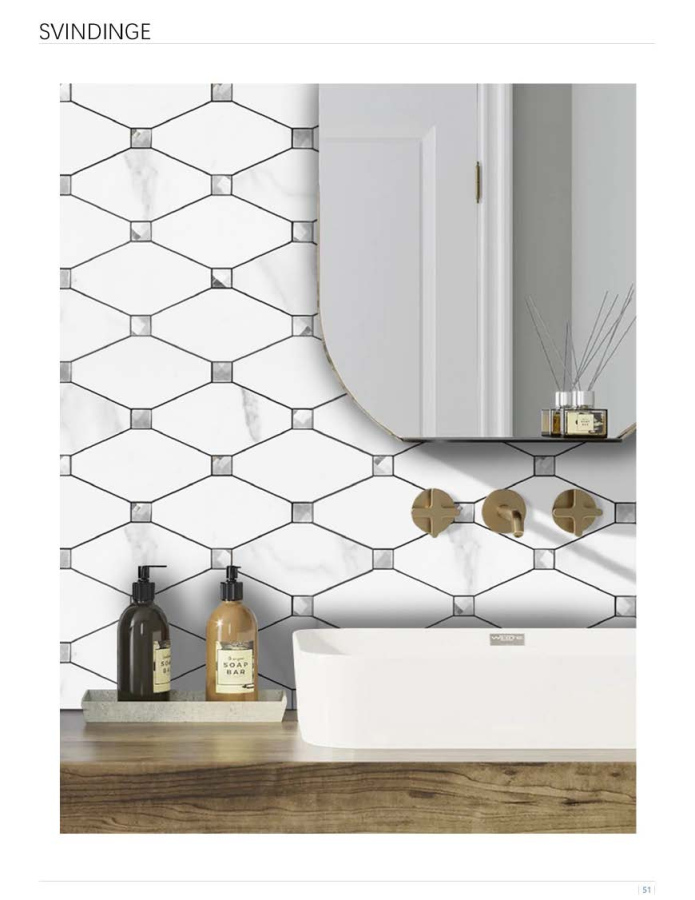These are peel - and - stick (adhesive) mosaic tiles with a distinctive, interlocking hexagonal - inspired geometric pattern. The tiles have a modern, sleek design where the shapes fit together to create a continuous, visually appealing layout. They come in various color schemes, including neutral tones and contrasting black - and - white marble - like textures. The adhesive backing enables easy DIY installation, making them suitable for enhancing walls, backsplashes, or feature areas in residential and commercial spaces, such as kitchens, bathrooms, or contemporary office interiors.