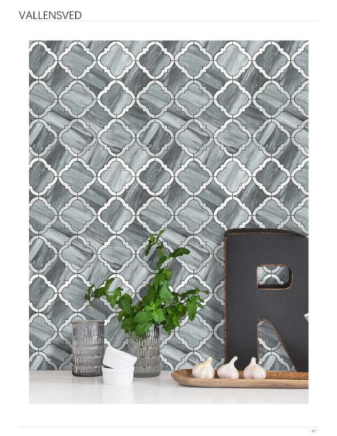 These are peel - and - stick (adhesive) mosaic tiles featuring a quatrefoil - inspired, lattice - like geometric pattern. The tiles have a classic, ornate design with a repeating motif that creates an elegant, almost traditional yet modern look. They come in various color schemes, including shades of gray, blue, and neutral tones, with marble - like textures that add depth and sophistication. The adhesive backing allows for easy DIY installation, making them suitable for enhancing walls, backsplashes, or feature areas in both residential and commercial spaces, such as kitchens, bathrooms, or boutique interiors.