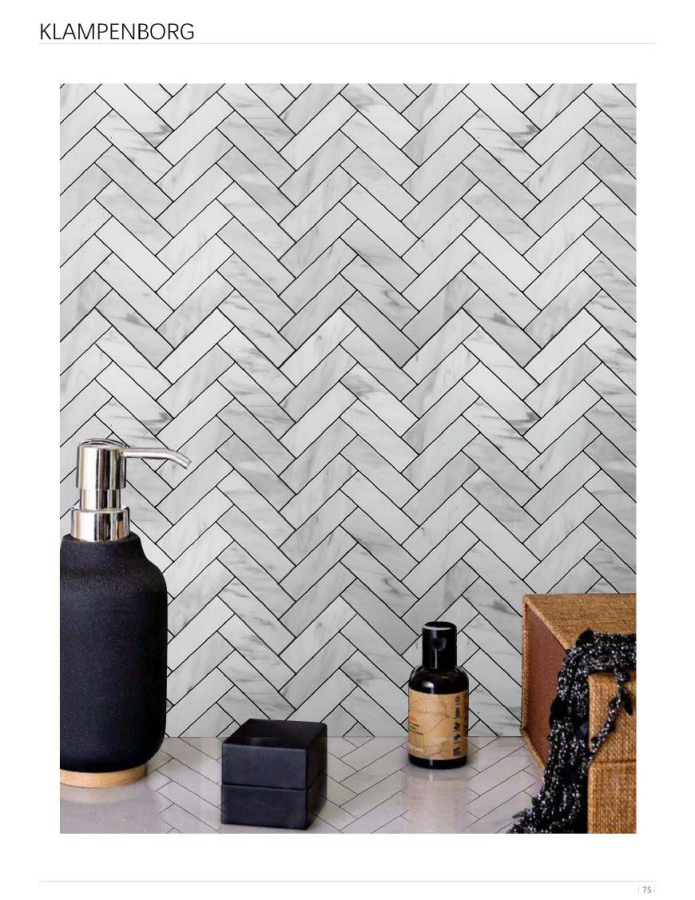 These are peel - and - stick (adhesive) mosaic tiles featuring a herringbone pattern. The tiles have a distinct, zig - zag layout that creates a dynamic, visually appealing texture. They come in various color schemes, including marble - like textures (with options like white, black, gray, and multi - colored stone looks) and some with metallic accents (e.g., gold in KVS - HOR - 01). The herringbone design adds a touch of classic elegance with a modern twist, suitable for enhancing walls, backsplashes, or feature areas in residential and commercial spaces. The adhesive backing allows for easy DIY installation.