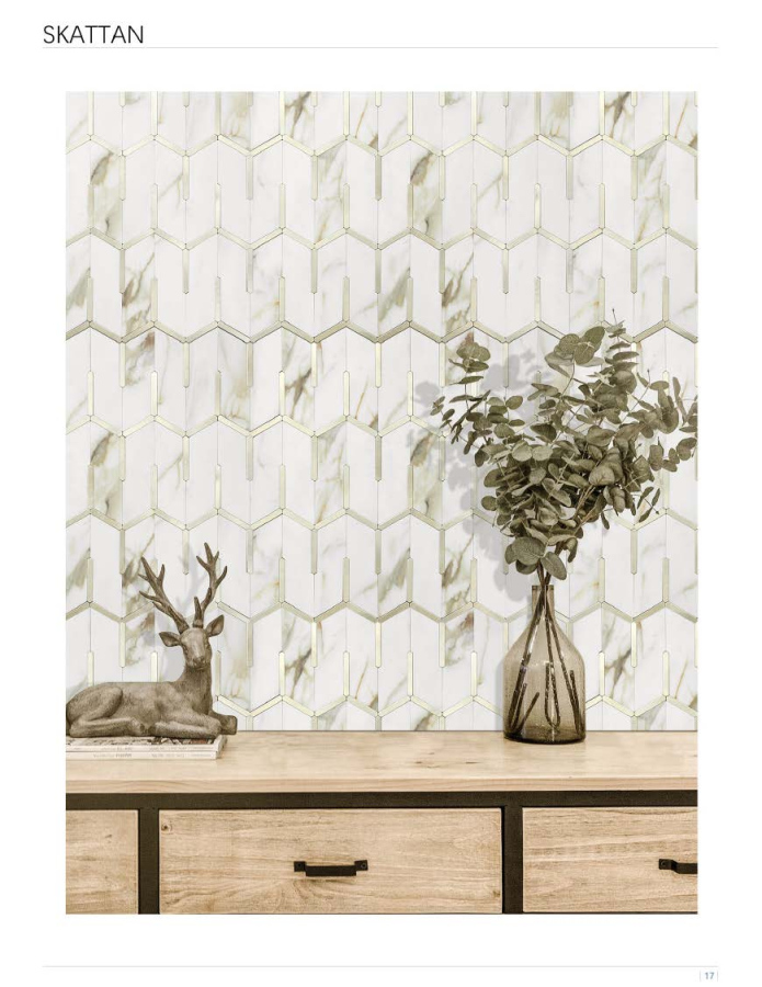 These are peel - and - stick (adhesive) mosaic tiles with a unique, geometric “wave - like” or “interlocking” design. They come in various color schemes, including marble - like textures (white, gray, blue, etc.) and some with metallic accents (like gold in KVS - SKA - 07). The tiles are arranged in sheets, making them easy to install for DIY projects. They are suitable for adding a modern, decorative touch to walls, backsplashes, or feature areas in homes, offices, or commercial spaces.