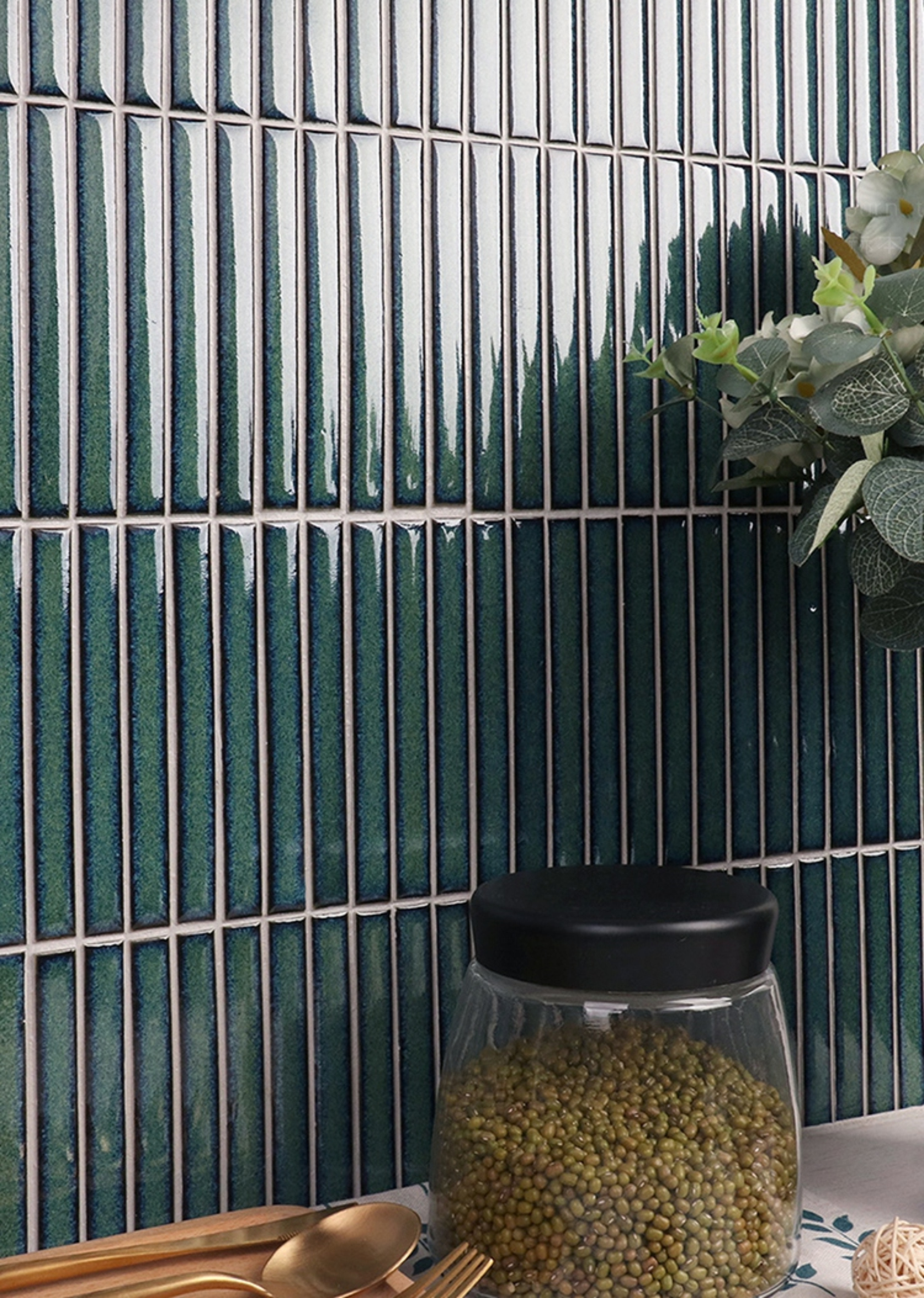 Elevate your interior spaces with our 15x145mm Teal Linear Ceramic Mosaic Tiles from the Rectangle Series. Designed to blend modern aesthetics with artisanal charm, these tiles bring a touch of sophistication and color to any design project.