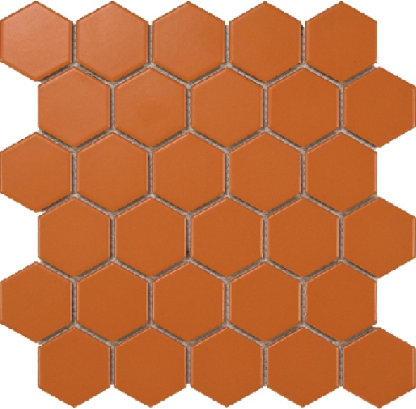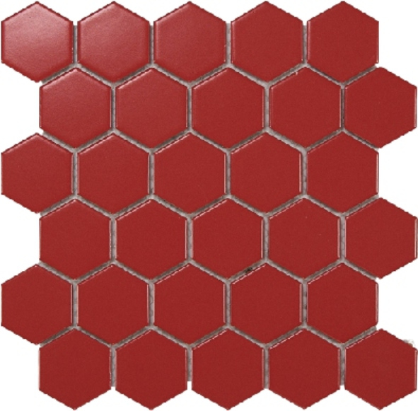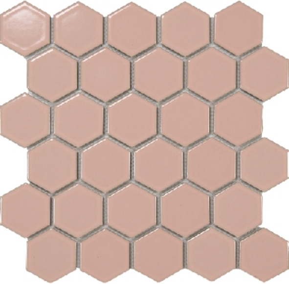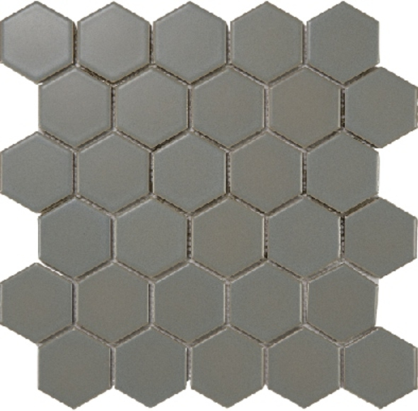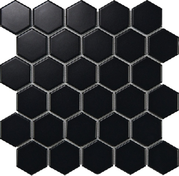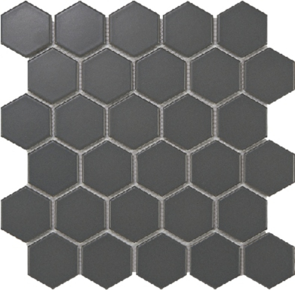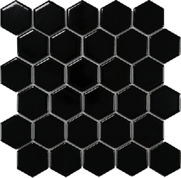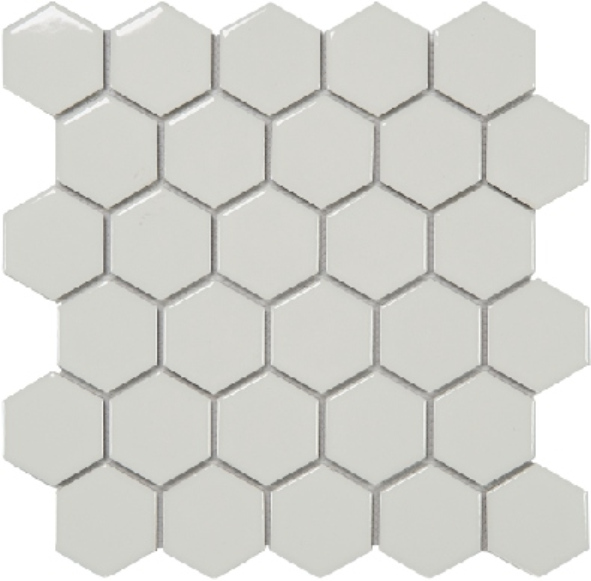 Each tile features a hexagonal shape, measuring 51x59mm, and is arranged on a 270x285mm sheet. This geometric pattern adds a subtle yet distinctive visual interest to walls and floors. The clean lines and uniform shape make it easy to create seamless, contemporary designs that complement a wide range of decor styles.