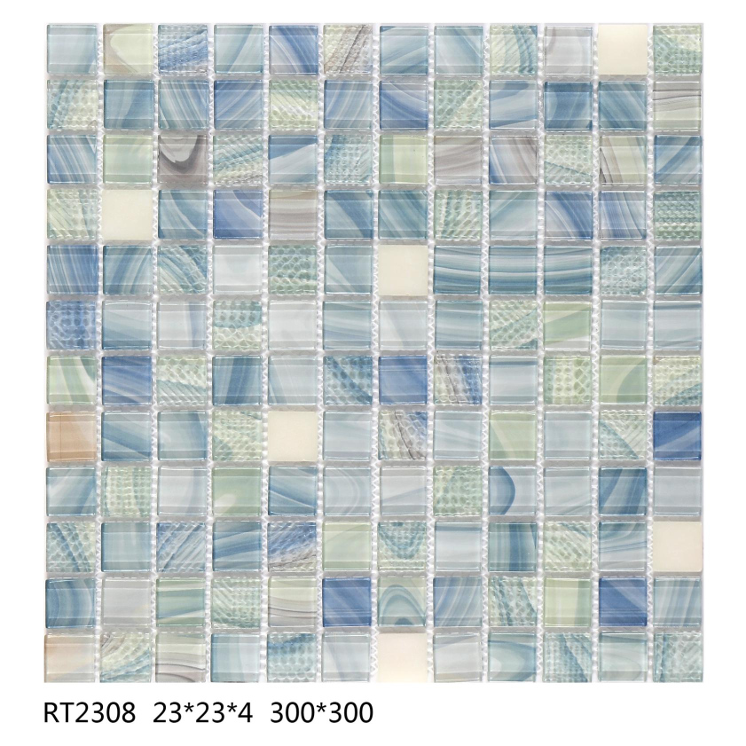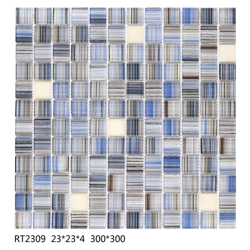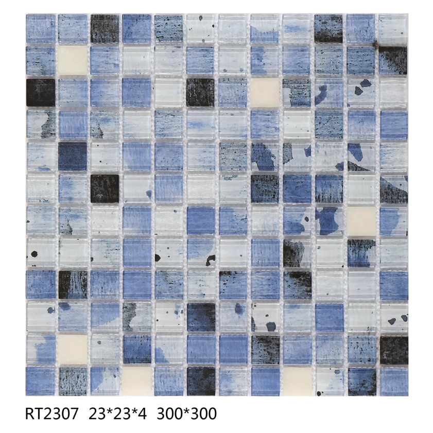 These 23×23×4mm Fluorescences Mosaic Tiles feature a blue - gray, marble - textured pattern. Perfect for adding a sleek, modern artistic touch to bathrooms, feature walls, or commercial spaces.