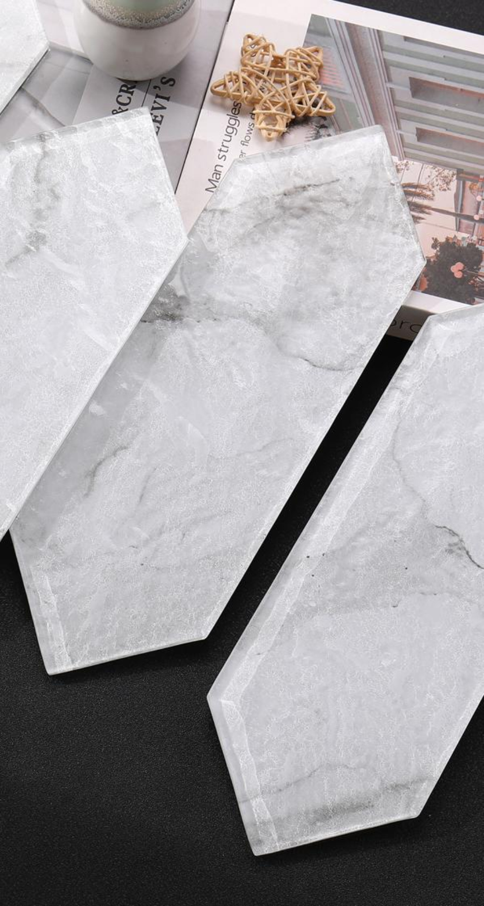 With each tile measuring 100x300mm, you have the flexibility to create various designs. Whether you want to cover an entire wall or create a focal point, these tiles offer endless possibilities. The unique shape and pattern ensure easy installation and a seamless, eye-catching look.