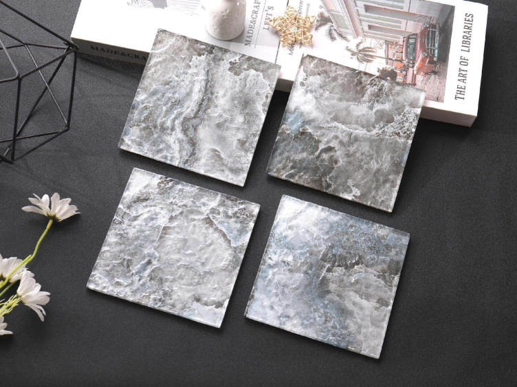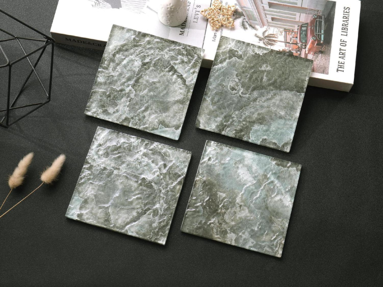 These 150x150mm inkjet glass mosaic tiles feature a blue - gray vein pattern with color variations. Ideal for creating artistic, modern feature walls in homes or commercial spaces.