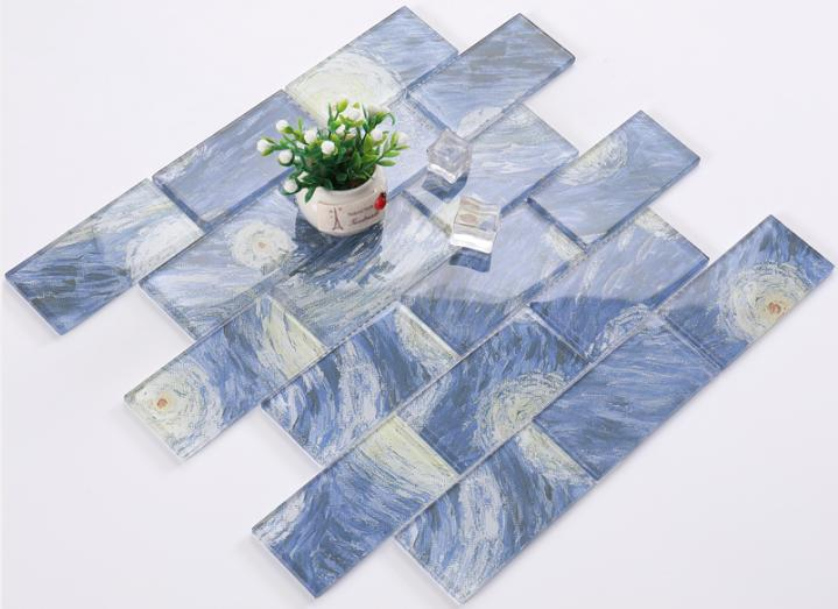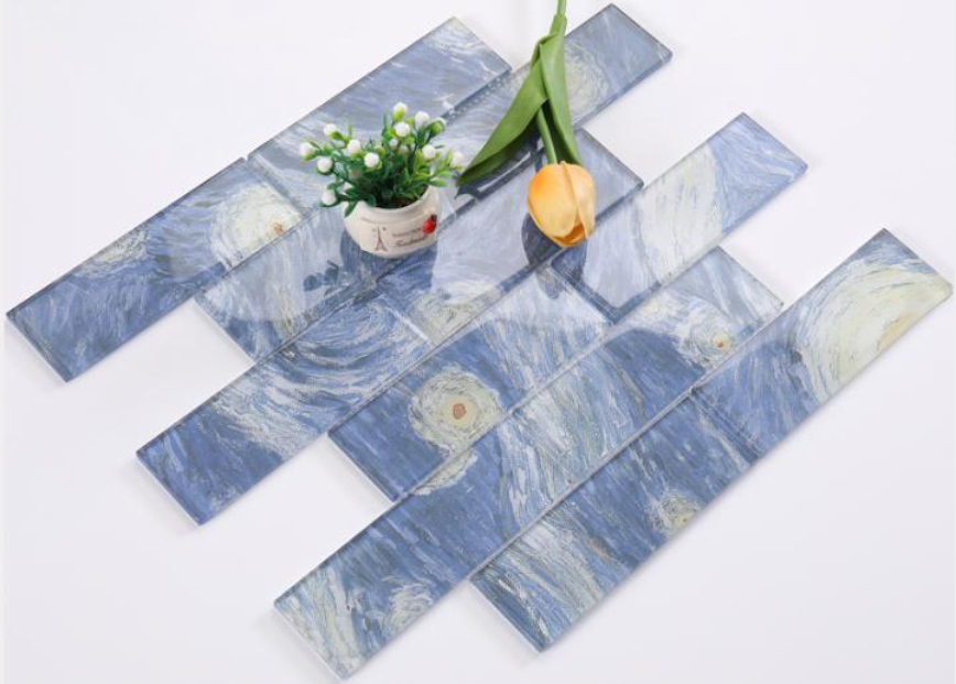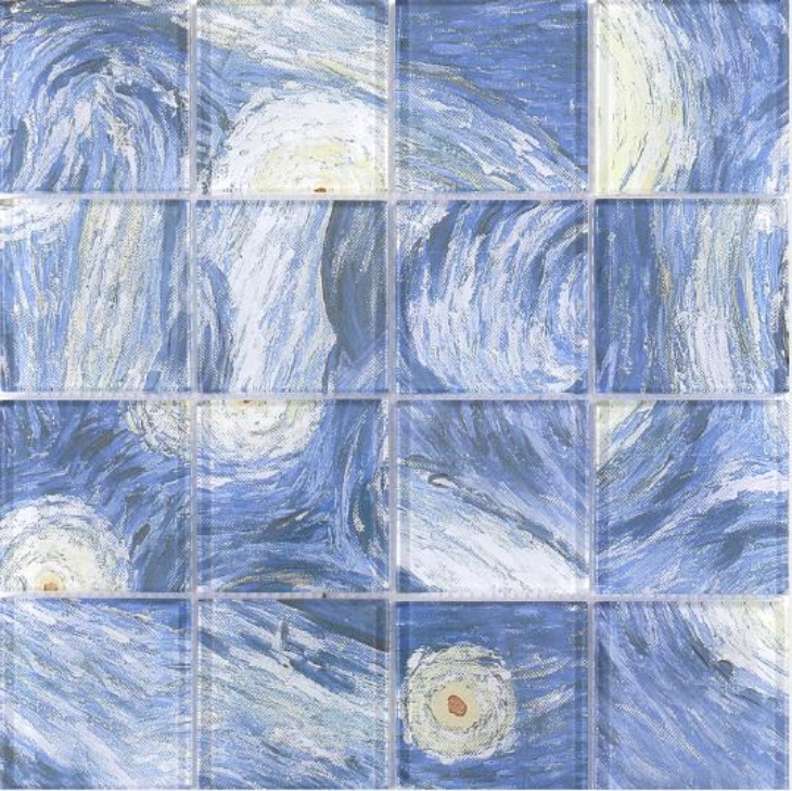 Each 48x48mm tile (arranged in 300x300mm sheets) captures the swirling blues, whites, and subtle yellows of Van Gogh’s masterpiece. The high - temp inkjet process preserves the painting’s dynamic textures and color gradients, creating a 3D - like artistic effect. Use them to transform living room feature walls, art studio accents, or hotel lobbies into spaces that celebrate creativity.
