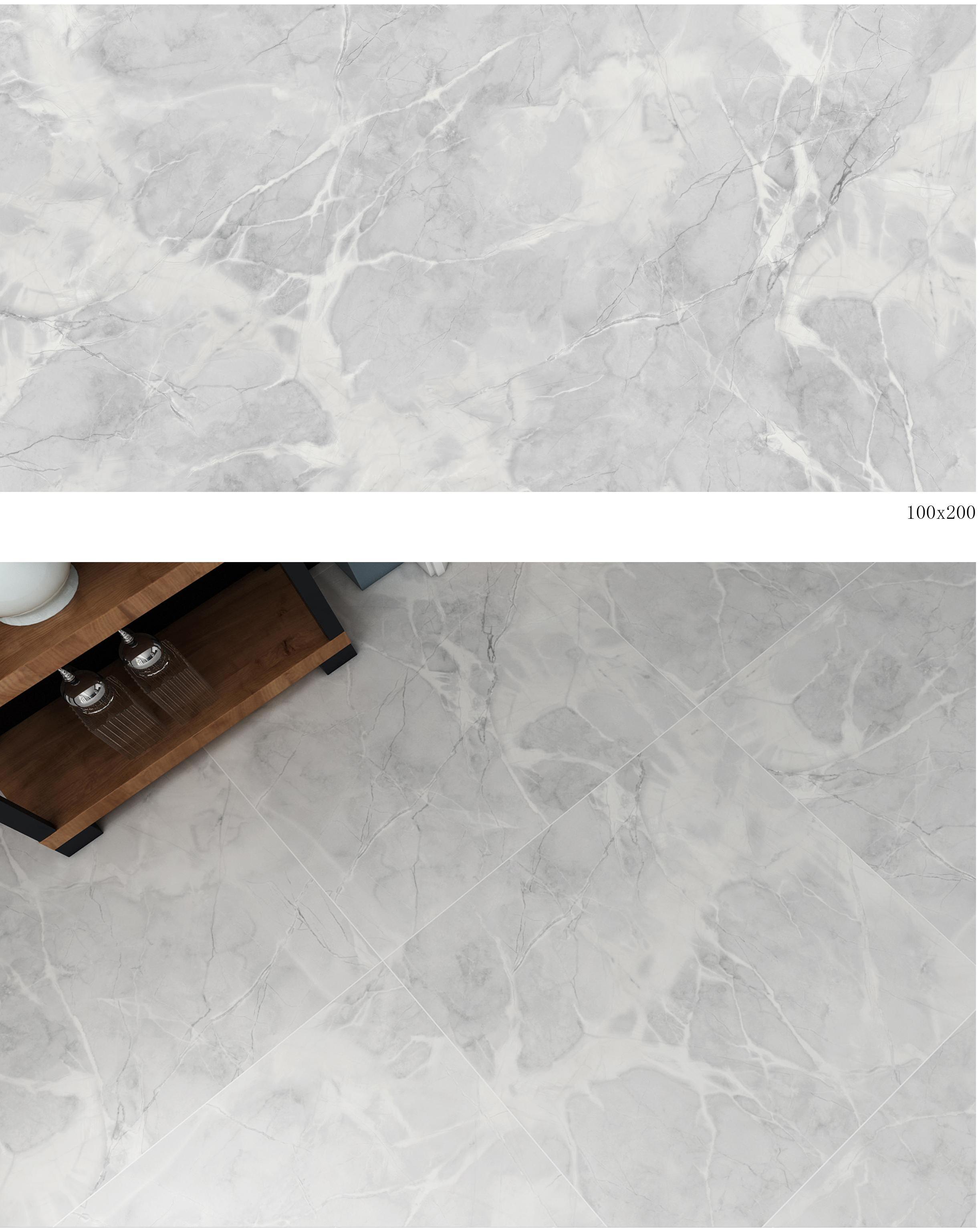 These light grey marble - look tiles come in two sizes, 100x200mm and 800x800mm, from the Light Grey Marble Elegance series. Featuring natural marble - like veins, they bring an elegant and sophisticated aesthetic to various interior spaces such as living rooms, bedrooms, and kitchens. With their versatile sizing and soft light grey hue, these tiles are perfect for creating a cohesive and stylish look in any interior design project, adding a touch of understated luxury and refinement.