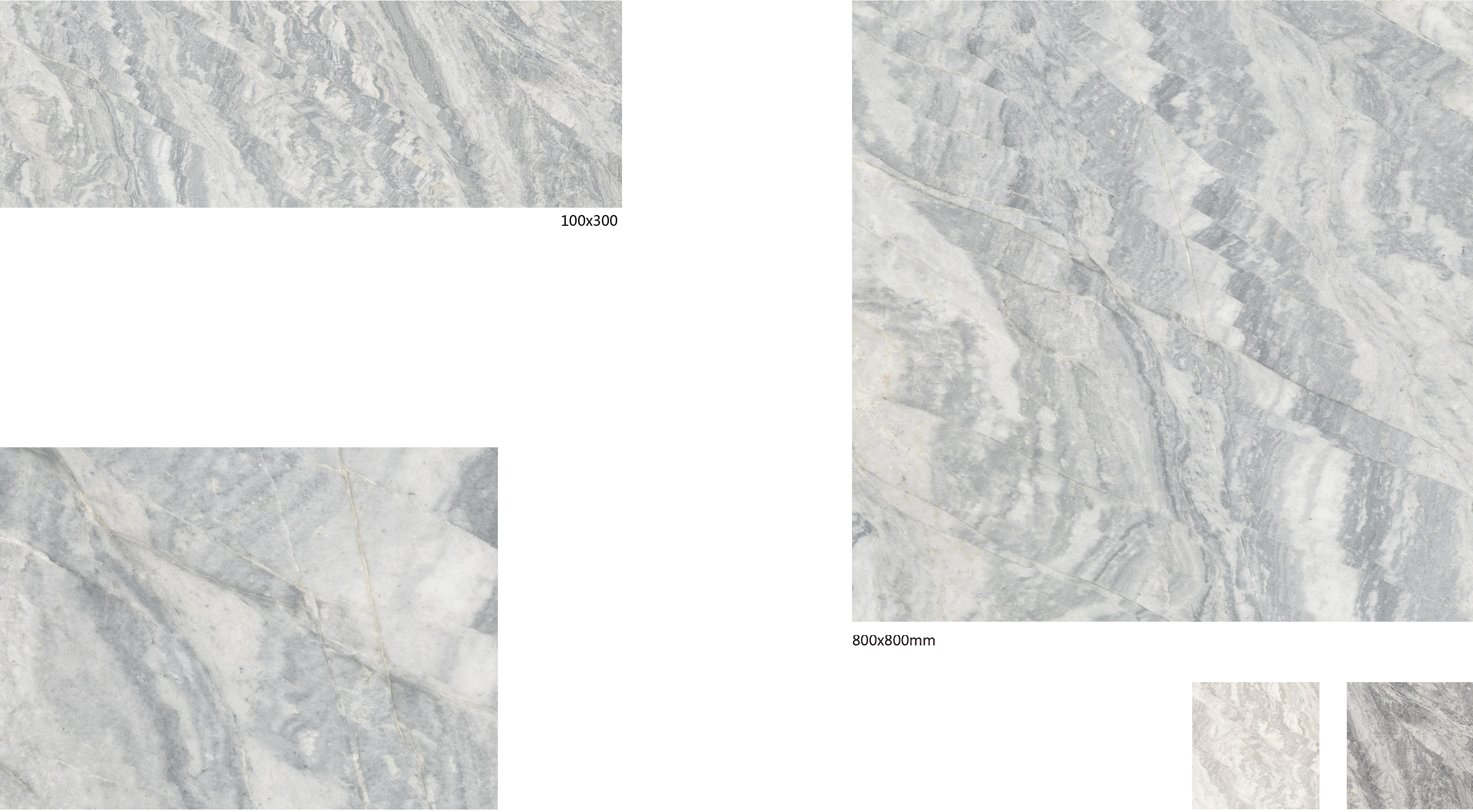 These grey marble - look tiles come in two sizes, 100x300mm and 800x800mm, from the Grey Marble Versatile series. Featuring natural marble - like veins, they bring an elegant and sophisticated aesthetic to various interior spaces such as bathrooms, kitchens, and living rooms. With their versatile sizing and authentic marble appearance, these tiles are perfect for creating a cohesive and stylish look in any interior design project.