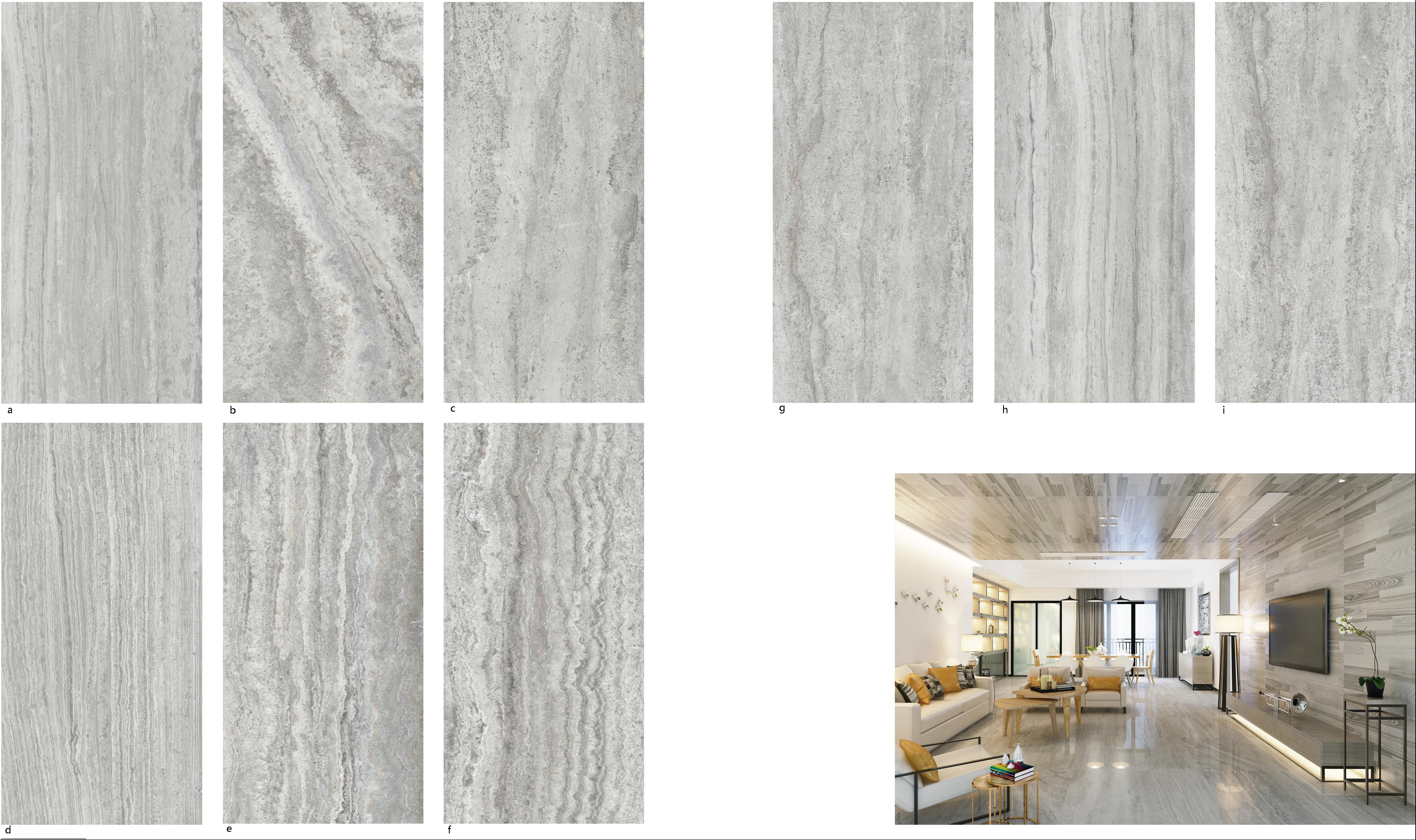 These 600x1200mm light grey travertine - look tiles from the Light Grey Travertine series are ideal for living rooms and other interior spaces. Featuring natural travertine - like textures with multiple unique patterns (a - i), they bring an elegant, natural aesthetic to living areas. Perfect for creating a warm and sophisticated ambiance in interior design, these tiles combine style with the charm of natural stone textures.