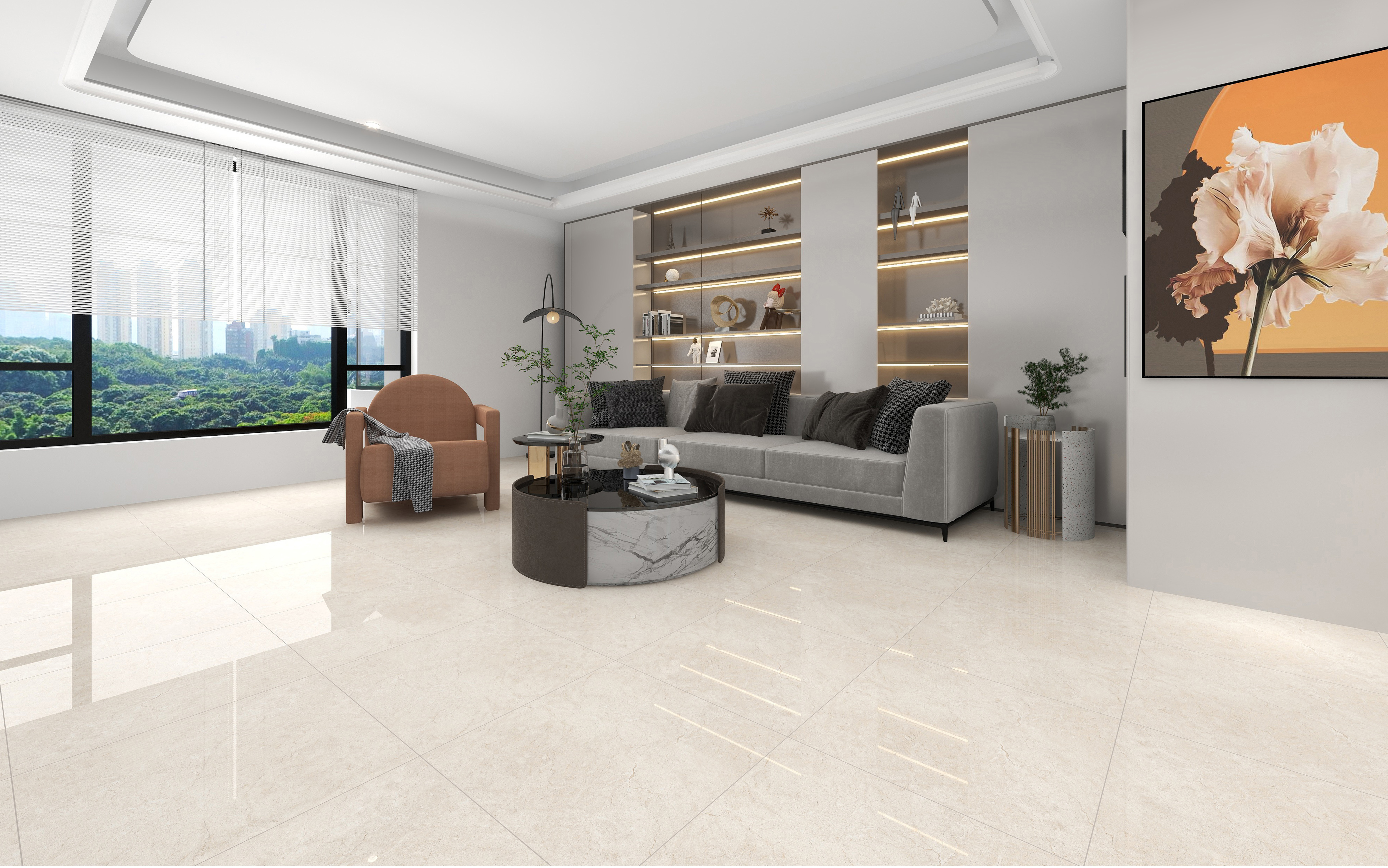| Key Feature | Glossy finish enhances space brightness; marble effect adds luxury |