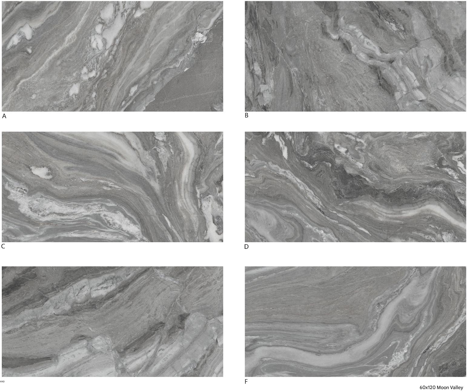 These 60x120cm grey marble - patterned tiles from the Moon Valley series are perfect for interior spaces. Featuring natural - looking veins and multiple unique patterns (A - F), they bring an elegant, marble - like aesthetic to living rooms, bathrooms, and kitchens. Ideal for adding a touch of luxury and sophistication to any interior design, these tiles combine style with versatility.