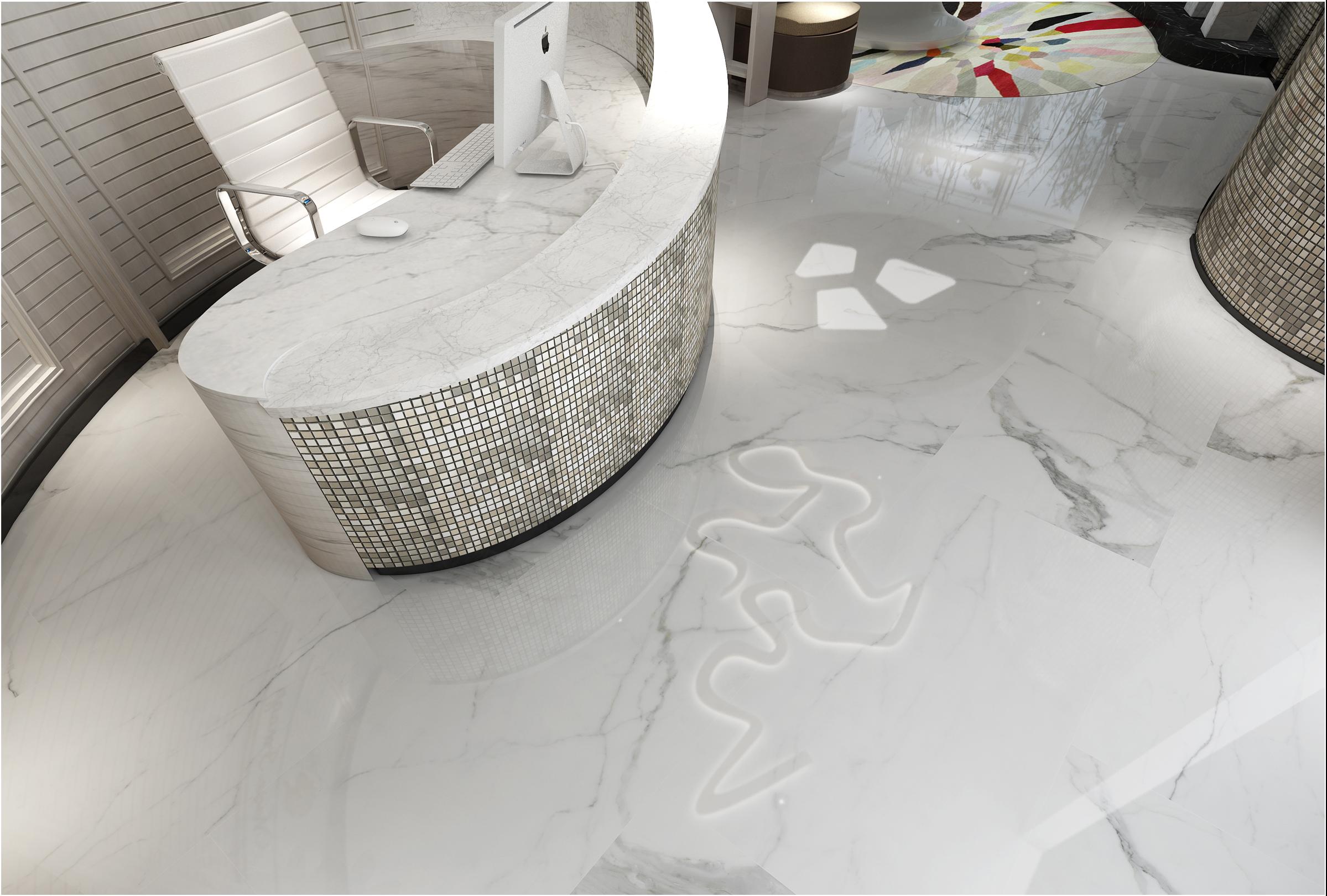 These 900x1800mm white marble - look tiles from the White Marble Luxury series are ideal for interior spaces. Featuring natural marble - like grey veins with multiple unique patterns, they bring an elegant and luxurious aesthetic to living rooms and commercial areas. Perfect for creating a high - end and sophisticated ambiance in interior design, these tiles combine the timeless beauty of marble with versatility in styling.