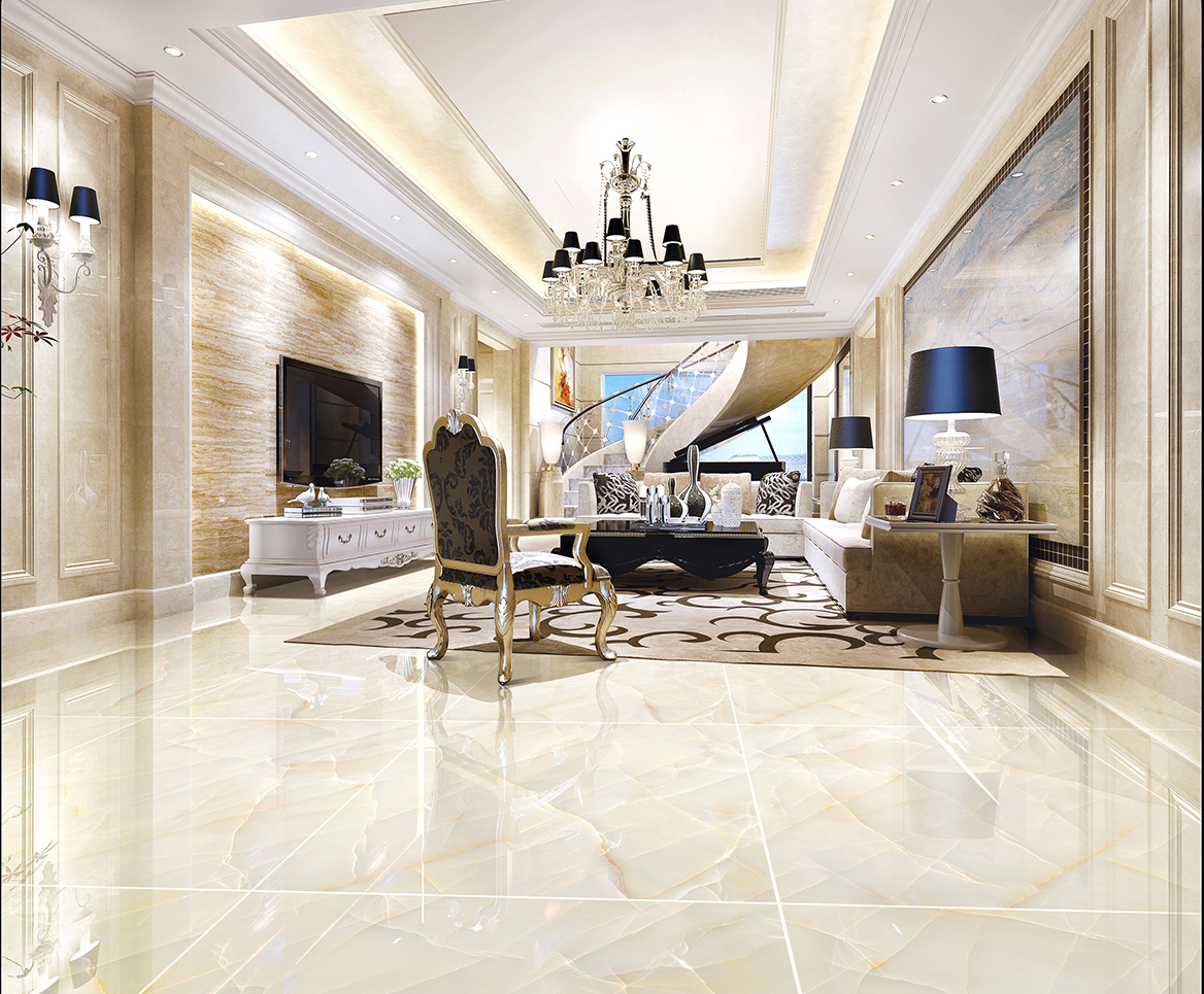 These cream - white onyx - look tiles, available in multiple sizes and part of the Cream - White Luxury Onyx series, feature an onyx - like pattern with subtle veins. They bring an elegant and luxurious aesthetic to living rooms and other luxury interior spaces. Ideal for interior design projects seeking a refined look, these tiles add a touch of sophistication and visual appeal, creating a stylish and welcoming environment.
