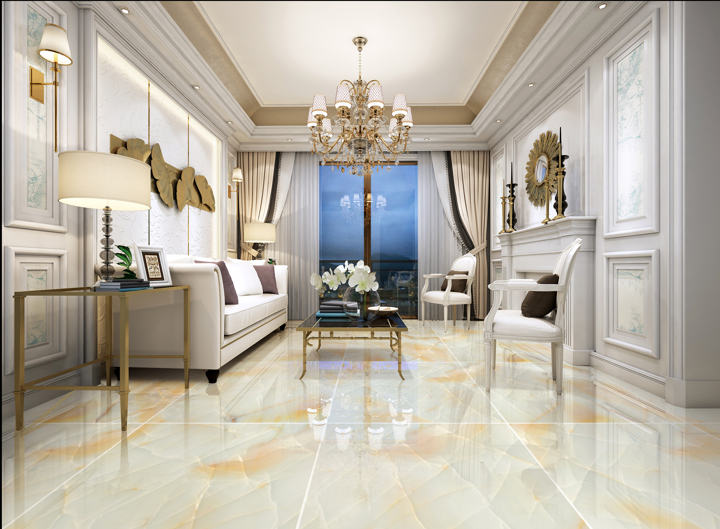 These cream - white onyx - look tiles with gold veins, available in multiple sizes and part of the Cream - White Gold Vein Luxury Onyx series, feature a stunning onyx - like pattern with elegant gold veins. They exude a sense of luxury and opulence, making them perfect for living rooms and luxury interior design projects. These tiles add a touch of grandeur and visual appeal, creating a stylish and inviting ambiance.
