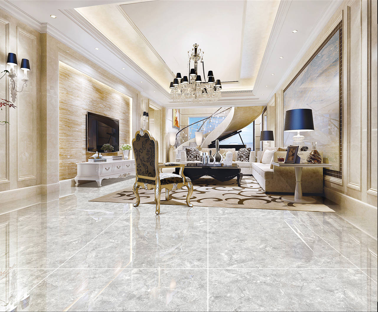 These grey marble - look tiles, available in multiple sizes and belonging to the Grey Luxury Marble series, showcase a delicate marble - like pattern with natural veins. They bring an air of luxury and sophistication to living rooms and other luxury interior spaces. Perfect for interior design projects aiming for elegance, these tiles add a touch of refinement and visual charm, creating a stylish and inviting ambiance.