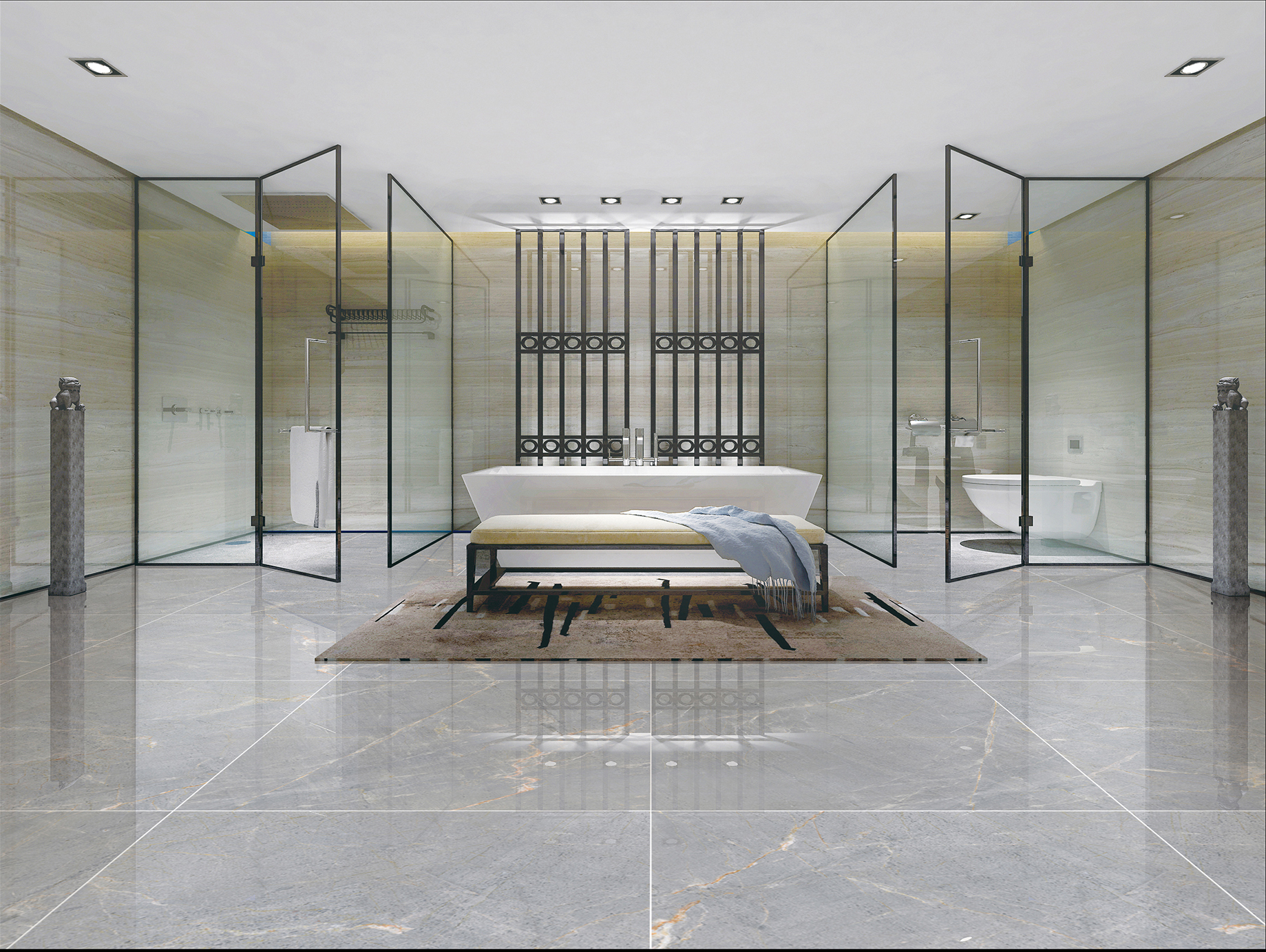 Featuring a striking marble - like pattern with elegant gold veins, they exude modern luxury and sophistication. Perfect for bathrooms and modern interior design projects, these tiles add a touch of opulence and visual appeal, creating a grand and stylish ambiance.