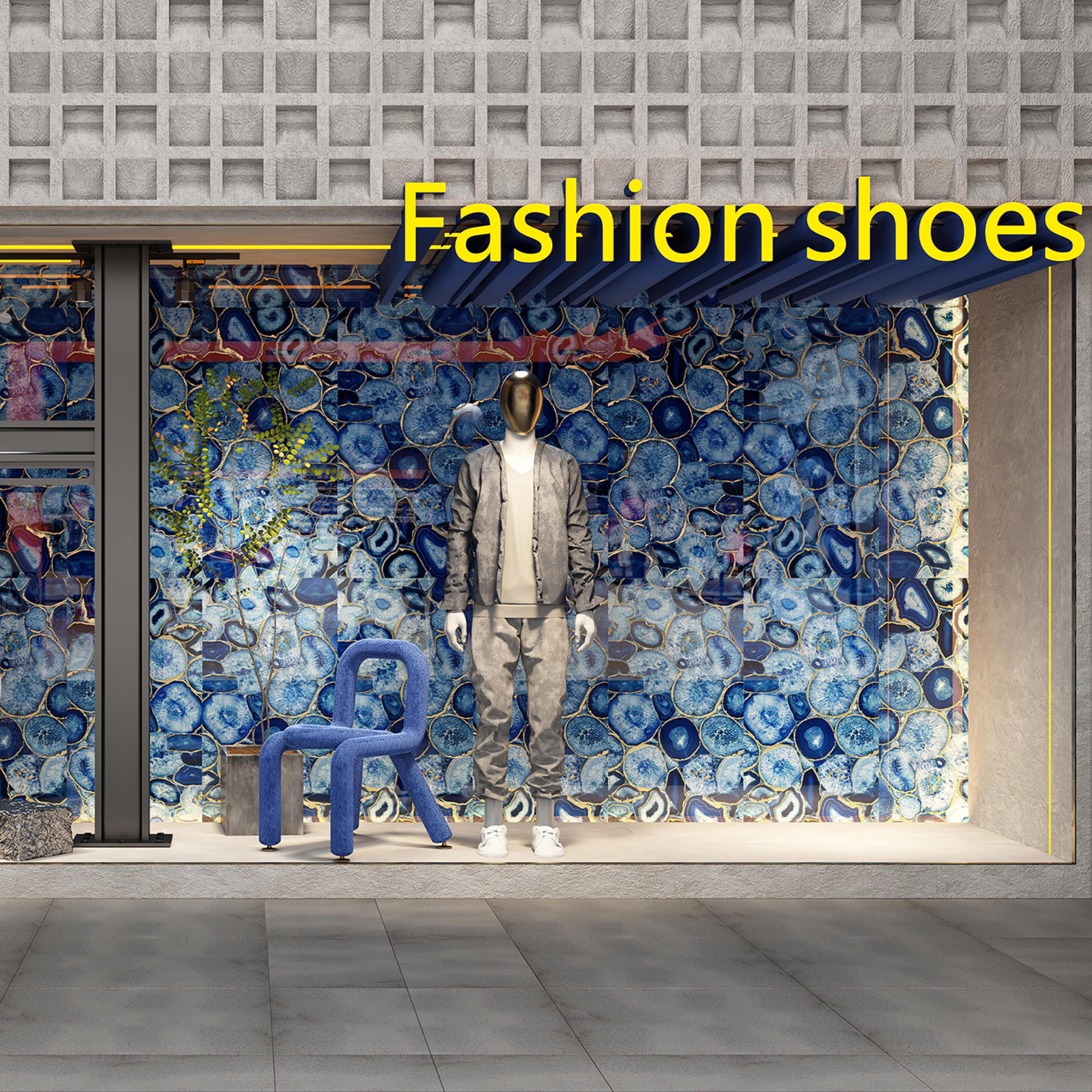 Mimicking the organic beauty of agate slices, the intricate pattern blends rich blue tones with gold accents. With a glossy finish that amplifies the stone - like shimmer, they transform retail store walls into eye - catching focal points, adding a touch of luxury and artistic flair to fashion boutiques or high - end retail interiors.
