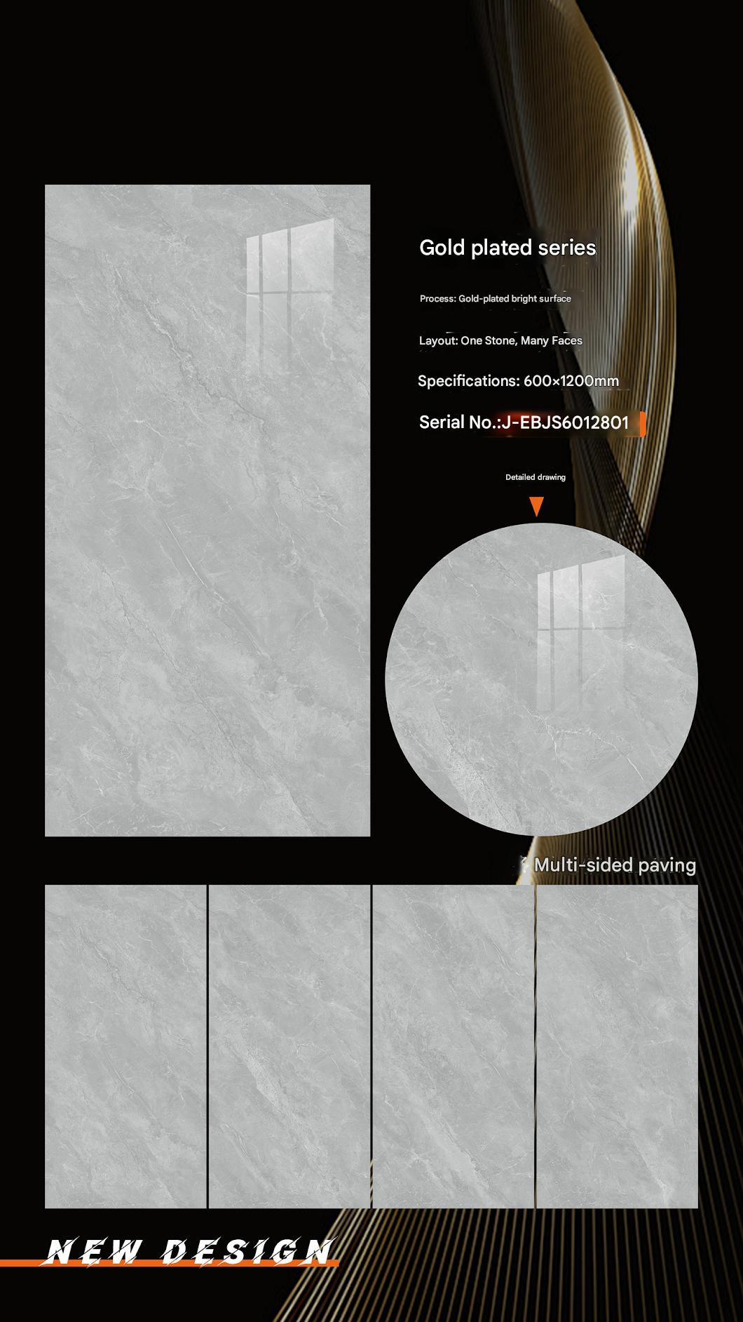 These 600x1200mm ceramic tiles from the Gold Plated Series feature a gold - plated bright surface and a light grey marble - look design with a “One Stone, Many Faces” layout. Ideal for interior decoration, they can transform any space into a haven of modern elegance and understated luxury, adding a touch of sophistication and a smooth, reflective sheen to walls and floors.