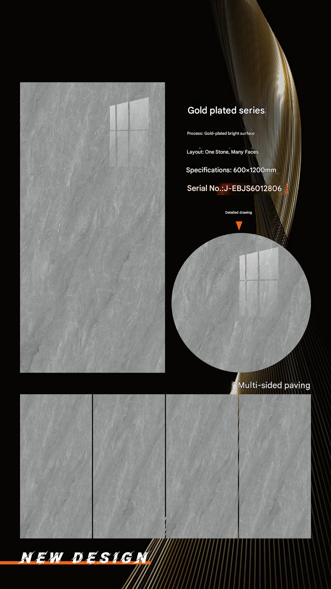These 600x1200mm ceramic tiles from the Gold Plated Series have a gold - plated bright surface and a light grey marble - look design with a “One Stone, Many Faces” layout. They are perfect for interior decoration, adding a touch of elegance and modernity to any space with their smooth, shiny surface and subtle marble patterns.