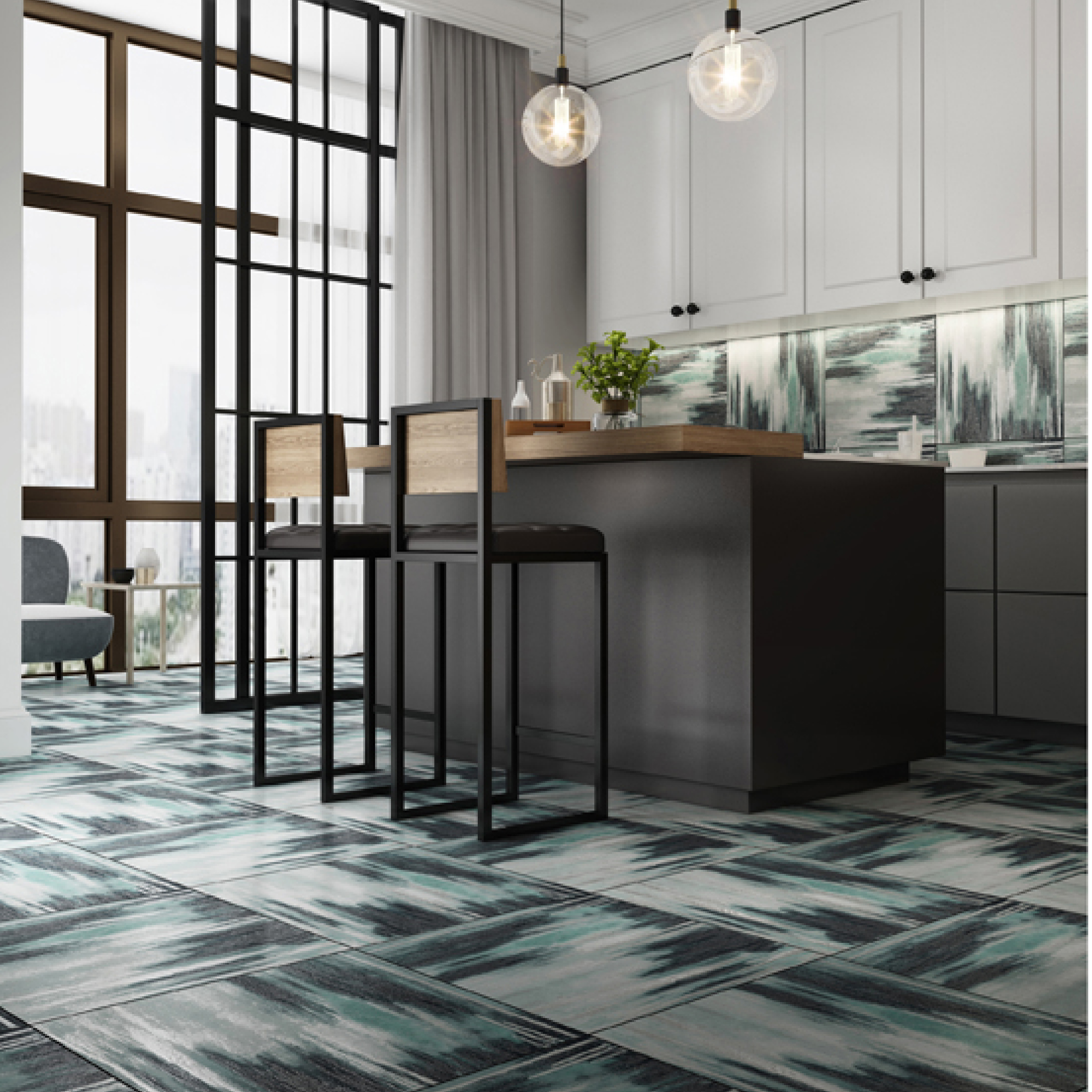 These 600x600mm ceramic tiles feature a captivating blue - grey abstract pattern, ideal for modern office and commercial space decor. They bring a touch of contemporary artistry to floors, enhancing the aesthetic of professional environments while ensuring durability and easy maintenance.