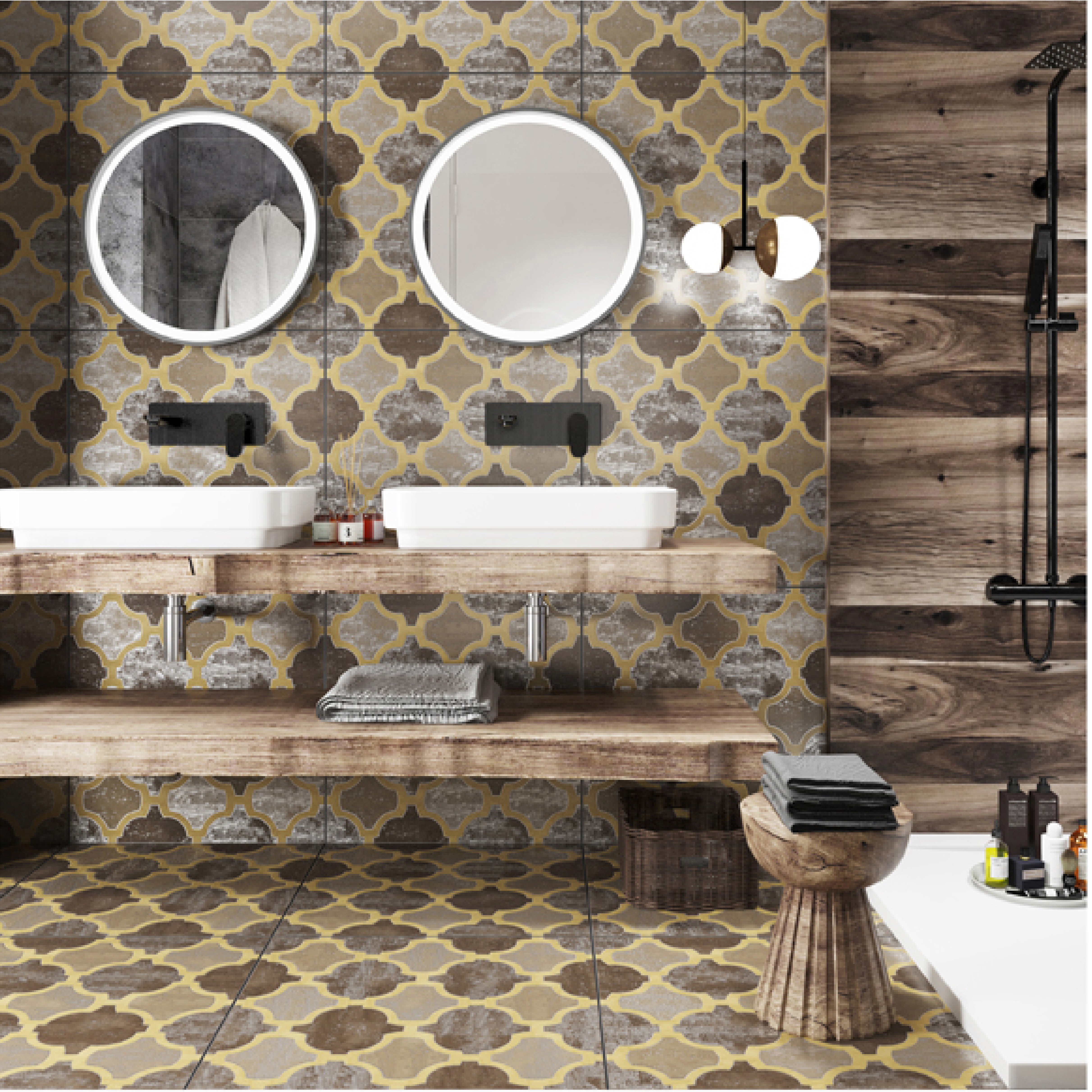 These 600x600mm ceramic tiles feature charming yellow and grey hues with intricate vintage - inspired patterns. Ideal for bathroom decor, they infuse the space with a nostalgic, retro vibe, transforming your bathroom into a cozy and stylish retreat. The textured finish adds to the authenticity of the vintage aesthetic, making every corner of your bathroom exude timeless charm.