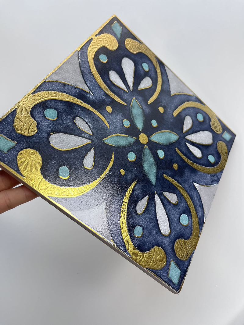 Transform your space into a Mediterranean - inspired art gallery with our 200x200mm Blue - Toned Floral Gilded Ceramic Tiles, model XC202033. As a highlight of the Gilded Tile Series, these tiles mimic hand - painted artistry—each showcases unique blue floral designs, from delicate daisies to intricate mandalas, all elevated by subtle gold gilded details that catch the light.