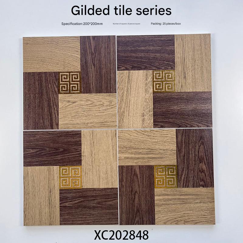 Elevate your interior spaces with the unique charm of our 200x200mm Wood - Look Patchwork Gilded Ceramic Tiles, model XC202848. As part of the exclusive Gilded Tile Series, these tiles masterfully blend the warmth of wood - grain textures with an artful patchwork layout, enhanced by exquisite gold geometric accents that bring a touch of luxury.