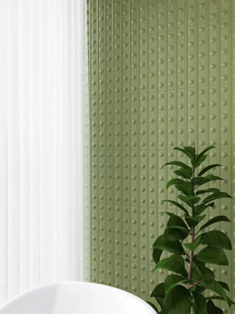 Bring the tranquility of nature indoors with our 50x300mm Soft - Light Olive Green Dotted Ceramic Wall Tiles, model XC503007. The soft - light olive green hue evokes the serenity of lush forests, infusing your space with a calm and organic ambiance. The evenly spaced dotted pattern adds a unique tactile and visual allure, turning ordinary walls into captivating design focal points.