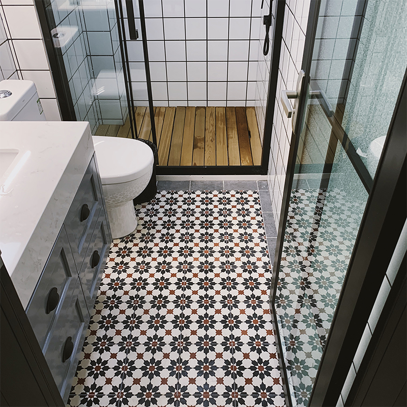 These 200x200 mm handmade cement tiles feature diverse intricate patterns (geometric, floral) in rich color palettes, blending Moroccan artistry with vintage - industrial charm for unique wall/floor accents.