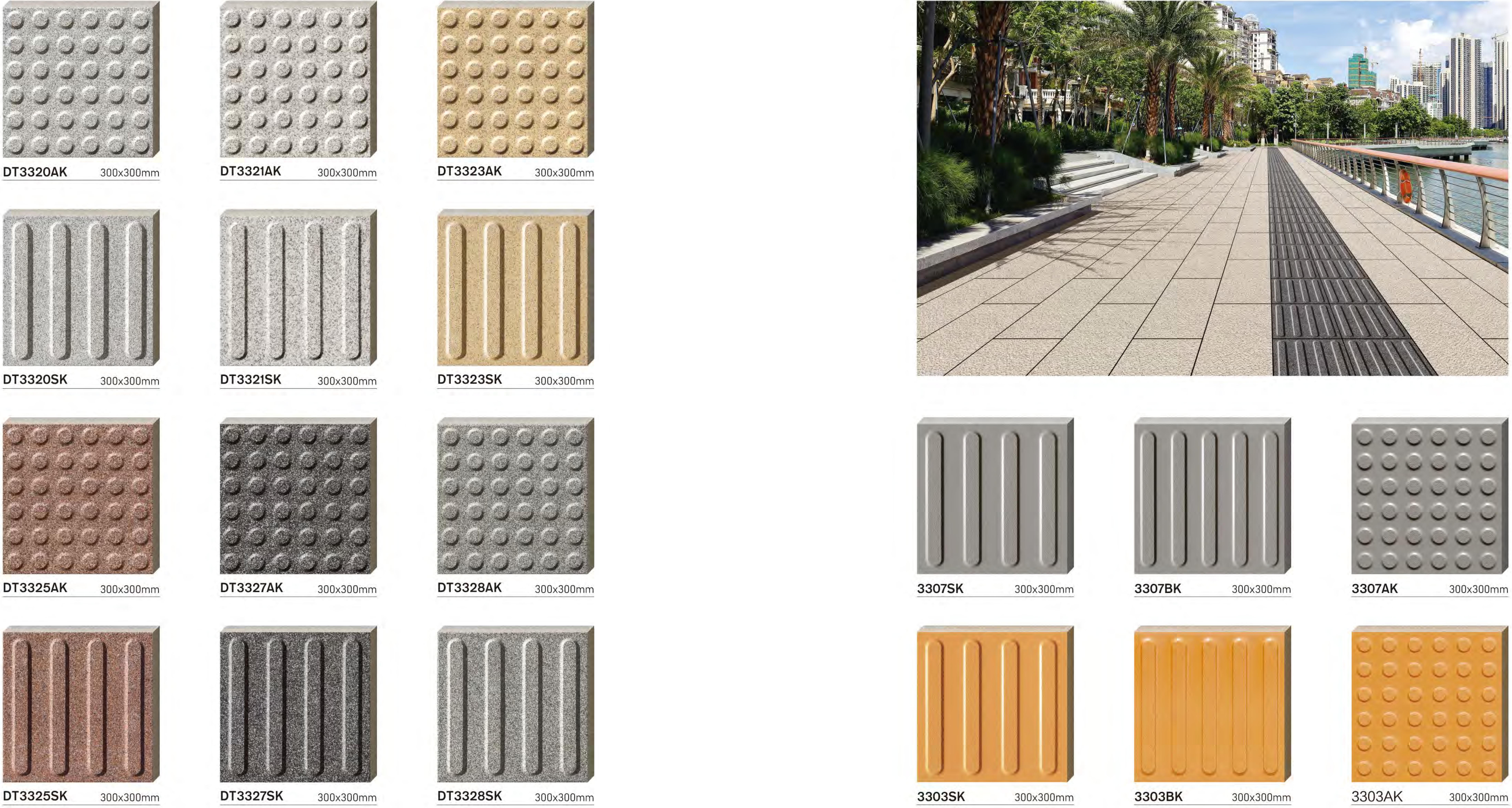 The 300x300mm Tactile Indicator Tiles are designed for public pathways, offering tactile guidance. With dot - pattern and strip - pattern options in various colors like gray, beige, and brown, they assist visually impaired individuals. Ideal for pedestrian walkways, accessible routes in public areas, these anti - slip tiles ensure safety and accessibility. They contribute to creating inclusive public spaces, combining functional design with diverse color choices to meet urban planning and accessibility needs.