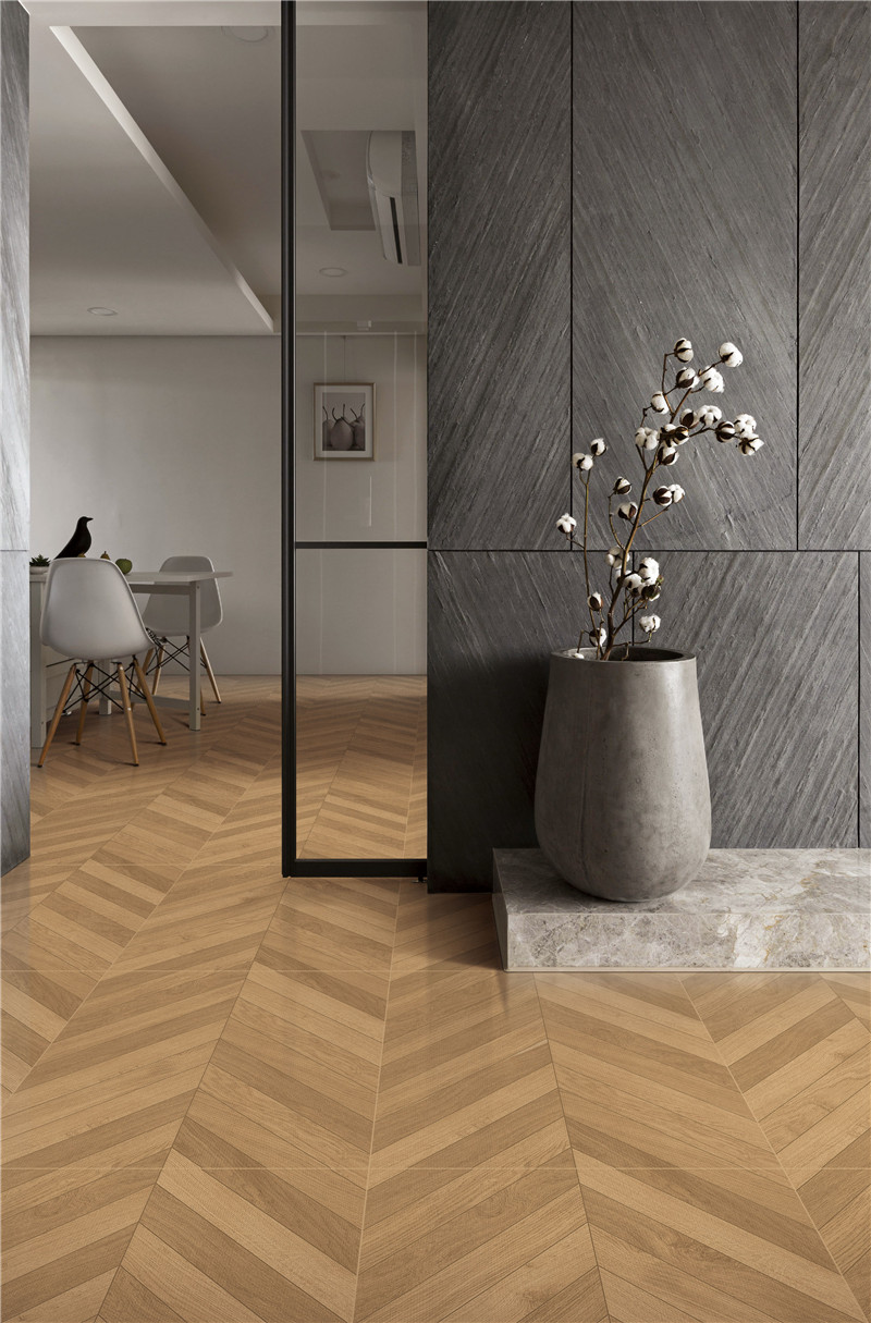 Crafted from premium ceramic, these tiles feature a polished herringbone design in a warm wood tone, merging classic style with nature - inspired comfort. Perfect for living rooms seeking a cozy, sophisticated vibe or dining areas aiming to impress with visual depth.