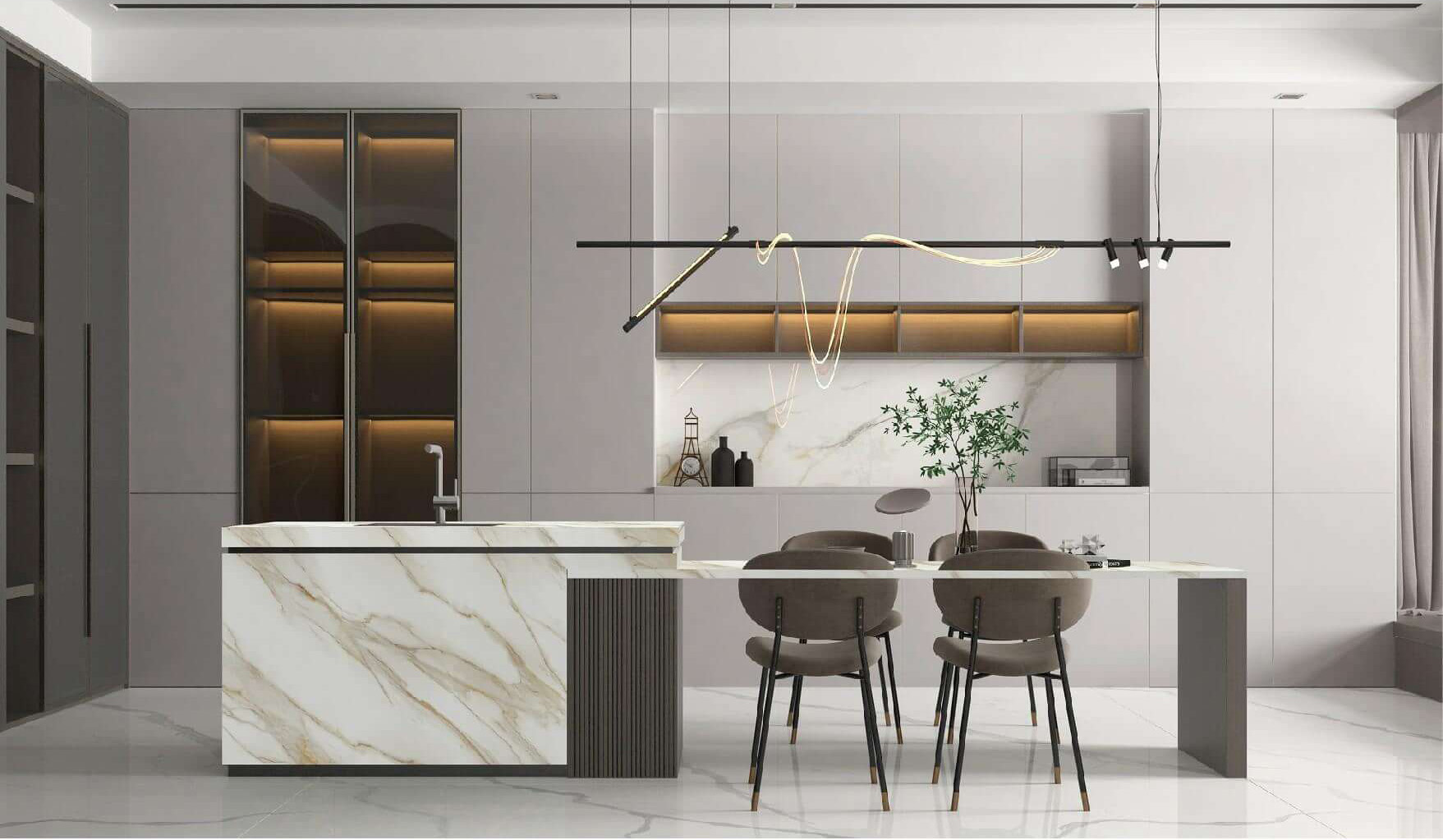 It is perfect for transforming high-end kitchen island countertops, statement dining tables, bathroom vanities, and feature walls into focal points of luxury. The large-format design minimizes joints and amplifies the seamless beauty of the vein pattern, creating a spacious, opulent atmosphere. Whether used in a modern kitchen or a refined living space, the ALICE KING series delivers the enduring allure of natural marble without the maintenance challenges, making it the ultimate choice for designers and homeowners seeking durable, high-style luxury.
