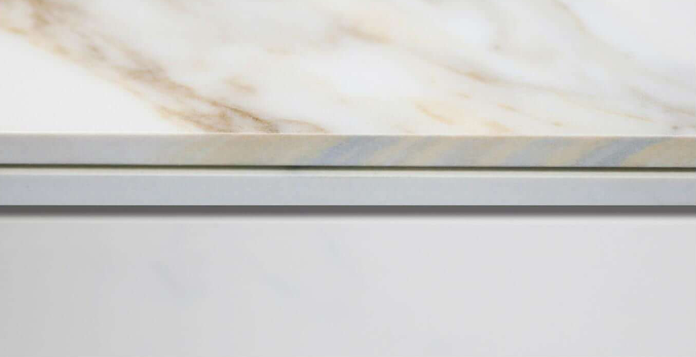 With 2-face mirror continuous patterning and full-body through-color technology, this sintered tile delivers a seamless, symmetrical effect across large surfaces, ensuring consistent texture and color from surface to core. Available in glossy, fine sand matte, and silky smooth finishes, it offers superior resistance to scratches, stains, heat, and moisture, making it ideal for a wide range of applications—from elegant staircase cladding and vanity countertops to movable furniture, custom interior designs, and even outdoor surfaces.