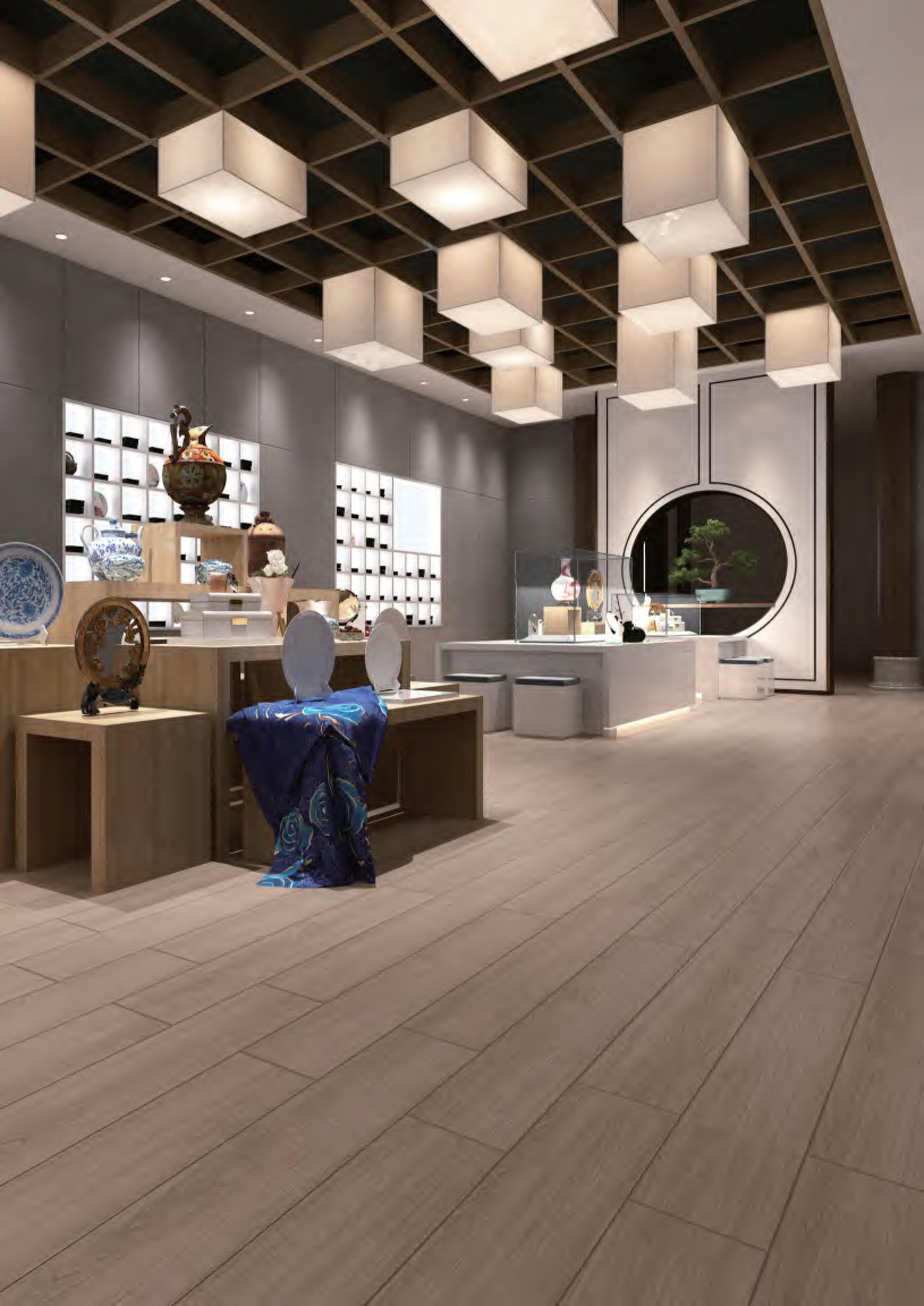 These 200x1200mm ceramic tiles boast a matt finish and a light brown wood - grain pattern. When installed on commercial space floors, they infuse a warm, natural wood - like charm, creating an inviting and elegant atmosphere.
