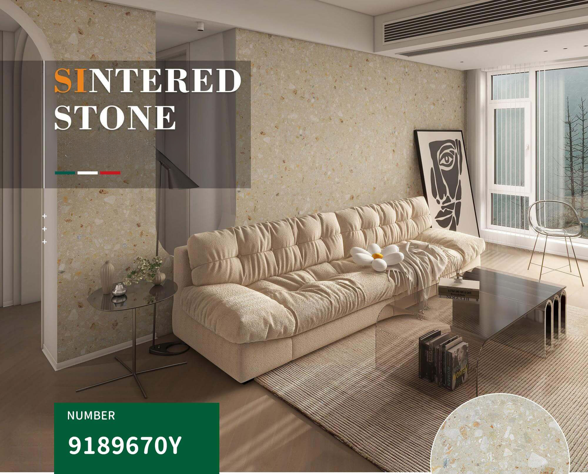 These 900x1800mm sintered stone tiles showcase a beige terrazzo - like appearance, perfect for living rooms and other interior areas. With a matte finish and fine dry grain carving craft, they present a textured and refined look. The one - stone multi - face design adds visual diversity. Ideal for enhancing the modern aesthetic of living rooms, they combine elegance with durability, creating a cozy and stylish atmosphere.