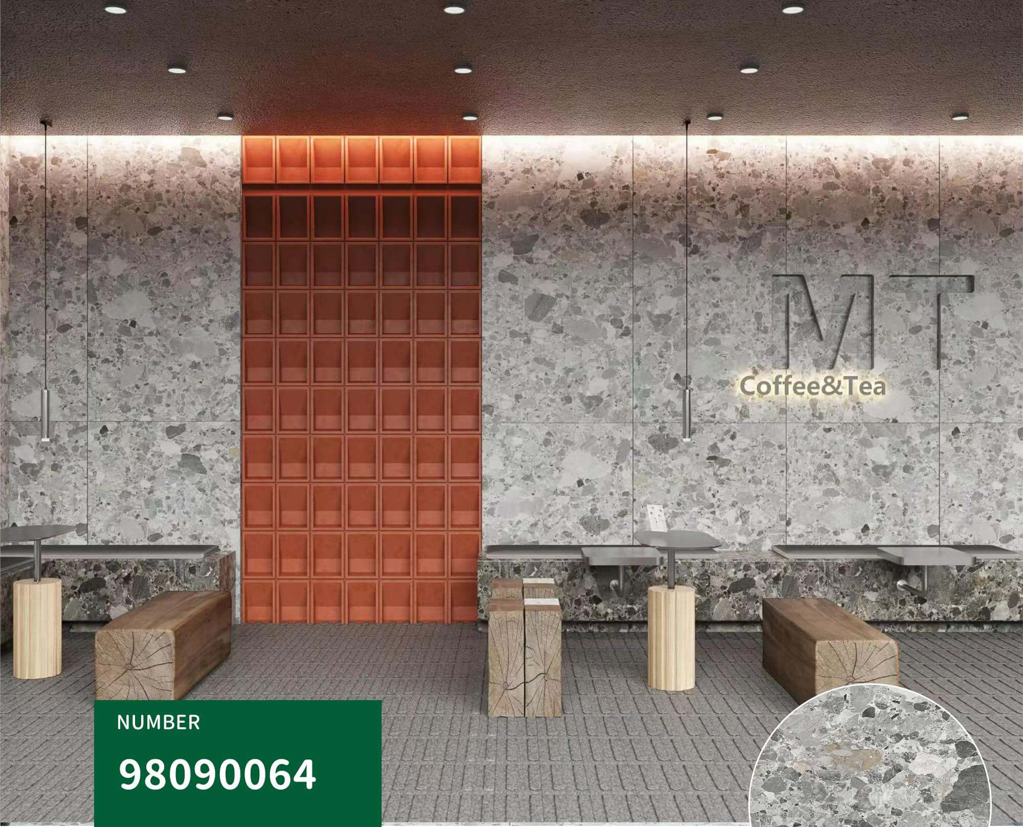 These 900x1800mm sintered stone tiles feature a grey terrazzo - like appearance, ideal for commercial spaces and other interior areas. With a matte finish and fine dry grain craft, they offer a textured, sophisticated look. The one - stone multi - face design adds visual variety. Perfect for enhancing the aesthetic of commercial spaces, they combine elegance with durability, creating a stylish and inviting atmosphere.